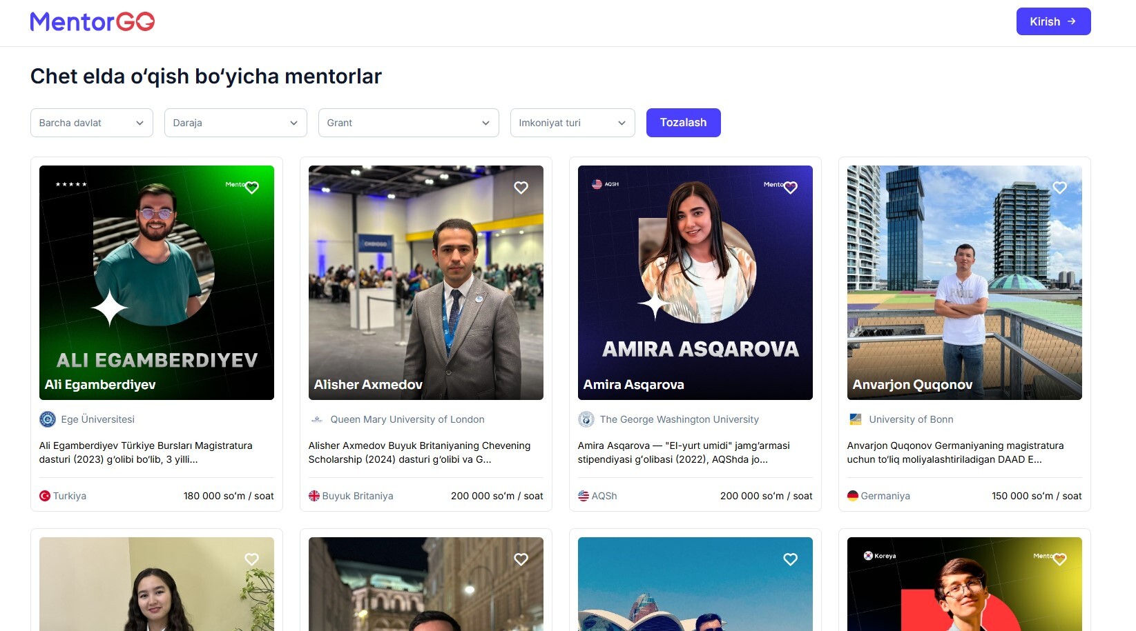 MentorGO – bu xorijda o‘qishni istagan yoshlarga yordam beradigan raqamli platforma.